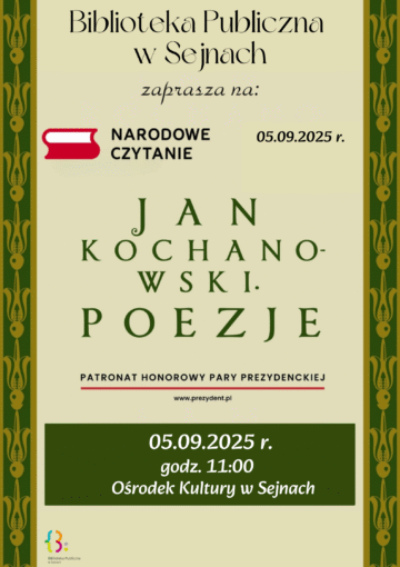📚✨ Biblioteka Publiczna w Sejnach zaprasza! ✨📚 Już 05.09.2025 r. o godz. 11:00 spotkamy się w Ośrodku Kultury w Sejnach […]